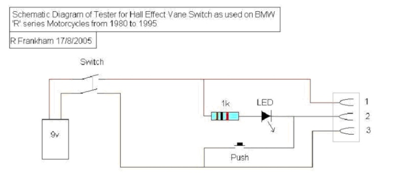 On teste directement l’allumeur à effet hall lui-même. On ne peut pas simplement branche une ampoule sur le + et le – comme pour un rupteur classique. Grâce à cette discussion du flatistan je tombe sur ce schéma qui permet de tester.